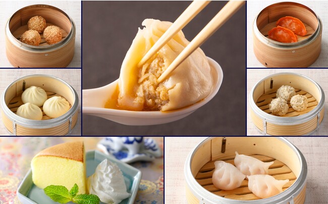 スペシャルコースでは、肉小籠包の他に、蟹の旨みたっぷりの『蟹小籠包』を食べ比べでご堪能いただけます。また小籠包2種に加え、しっとり柔らか『特製肉焼売』や、ふわっふわの新食感の『台湾カステラ』、胡麻の風味と優しい甘さの『胡麻団子』など、人気のラインナップが勢ぞろい!