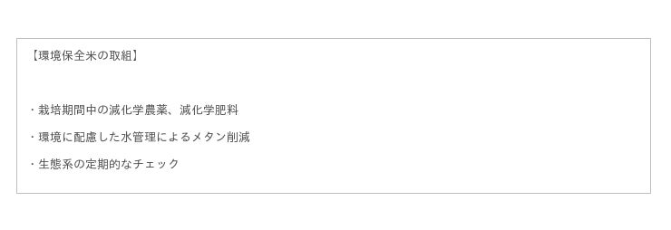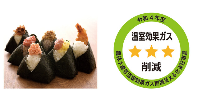 おだむすびで使用している「JAみやぎ登米」の米は、農薬や化学肥料をできるだけ少なくして、自然環境・生態系を守りながら栽培しています。環境と人にやさしい、安心・安全な「環境保全米」を消費者が購入して食べることで、生産者と消費者が連携して環境を守ることに繋がります。これらの取組が高く評価され、温室効果ガス削減「見える化」ラベルでは星3を獲得しています。