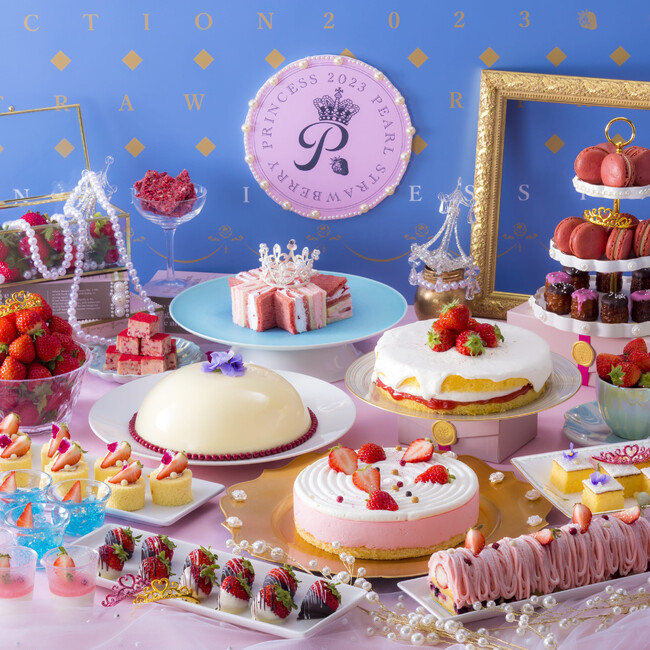 2023年3月31日(金)までは『グラマラス・プリンセス』をテーマに、国産のフレッシュいちご3種や、ピンクとブラックを基調としたグラマラスなスイーツなどをご用意。人気のファッションアイテムである“真珠”をキーポイントに、プリンセスの煌びやかな世界観を店内に再現し、フォトスポットなどで撮影も楽しんでいただいております。