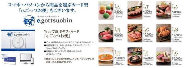 メインとなるグルメカタログ「ごっつお便」は勿論のこと、スマホ・パソコンから商品を選ぶカード型「e ごっつお便」もリニューアルいたします。更に、香典返しや法要の引出物など返礼品に最適な「ごっつお便 弔事用カタログギフト」を2023年4月上旬に販売を予定しております。