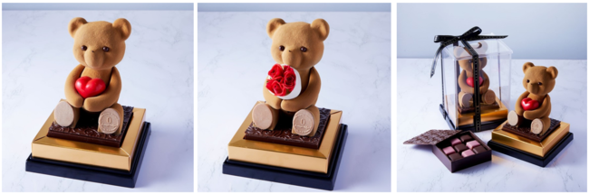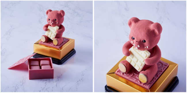 大人気のヌヌースシリーズは、そのまま飾っておきたくなるほど可愛らしいテディベアのチョコレート。板チョコをかじった食いしん坊のヌヌースはもちろん、ヌヌースが座っているショコラボックス、ショコラボックスに隠されたギモーヴショコラもルビーチョコレートでご用意いたしました。