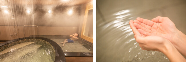 当館の温泉スチームサウナは、自家源泉(約70度)が流れる温泉管に温泉水を垂らして蒸気を発生させる構造です。これは、「源泉が高温である事」「湯量が豊富である事」「設備を痛めない泉質である事」など、一定の条件が揃わないと実現ができません。また、このような構造を採用する事で、「熱源を一切使用しない温泉スチームサウナ」として環境にも優しく、サスティナブルな設備となりました。このような環境だからこそ実現できた、全国的にも非常に珍しい「スチームサウナ」です(サウナ建設の専門家より)