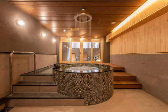 ■浴室内設備…温泉スチームサウナ/ロウリュサウナ/水風呂(水深60cmリング型シャワー付)/温泉(源泉掛け流し)/シャワーカラン2ヶ所/寝転がりクッション/外気浴テラスにインフィニティチェア3個