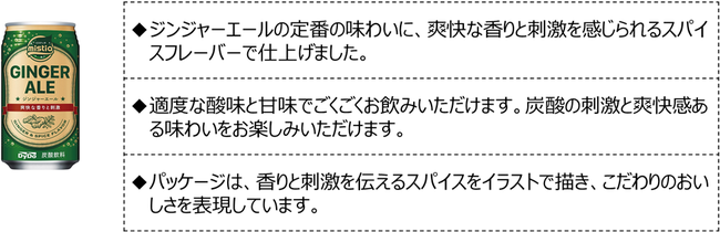そして、若い世代から大人まで楽しめる「ミスティオ」ブランドの新商品「ミスティオ ジンジャーエール」は、ジンジャーエールの定番の味わいに、爽快な香りと刺激を感じられるスパイスフレーバーで仕上げ、炭酸の刺激と爽快感ある味わいをお楽しみいただけます。