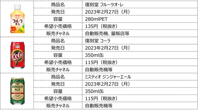 近年、若年層を中心にレトロなアイテムがトレンドとなっている中、当社では「懐かしいけどどこか新しい、時代・世代を超えてみんなに愛されるおいしさのブランド」として「復刻堂」ブランドを展開。2021年に「復刻堂 メロンソーダ」、「復刻堂 いちごオ・レ」を、昨年は「復刻堂 クリームソーダ」、「復刻堂 レモネード」、「復刻堂 ミルクコーヒー」を発売し、レトロなパッケージと親しみやすい味わいで若年層を中心に大変ご好評をいただきました。