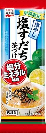 株式会社 永谷園(社長:成田 健一、東京都港区)は、暑い季節にサラッと食べられ、塩分・ミネラルが補給できるお茶づけの素「冷やし塩すだち茶づけ」(税抜250 円)を、今年も春夏限定で2023 年3 月6 日(月)より全国で発売いたします。すだちの爽やかな風味を感じられる“冷やし茶づけ”は、さっぱりとした味わいで、徐々に気温が高くなるこれからの季節に、火を使わずに調理できる手軽さも嬉しいポイントです。※本商品でのミネラルとは、カリウム、マグネシウム、鉄のことです。