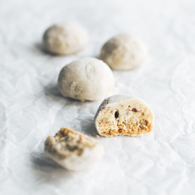 直火焙煎したカシューナッツをココアバターでコーティング、和三盆とココアパウダーをまぶして冬の装いに仕上げました。