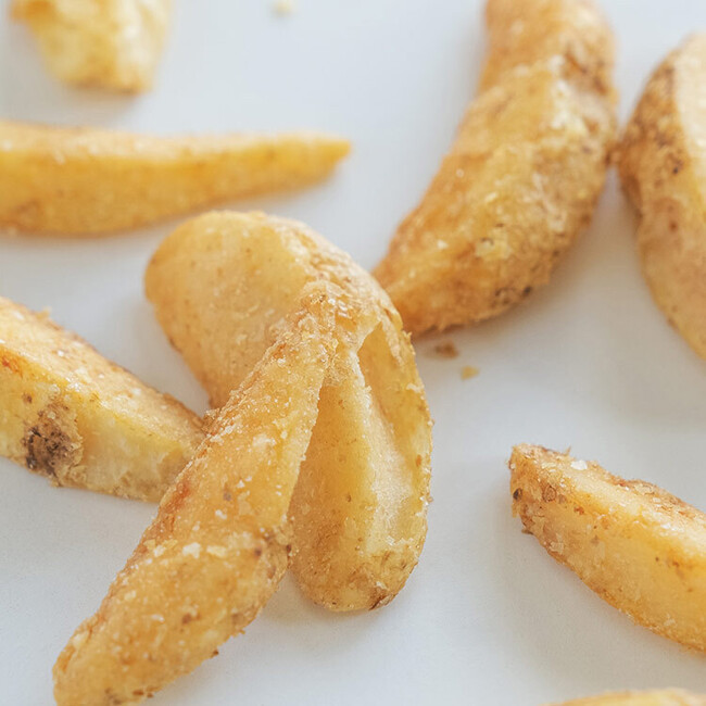 北海道産のじゃがいもを皮付きのまま、くし型に大きめにカットしたざくざく食感のフライドポテトです。