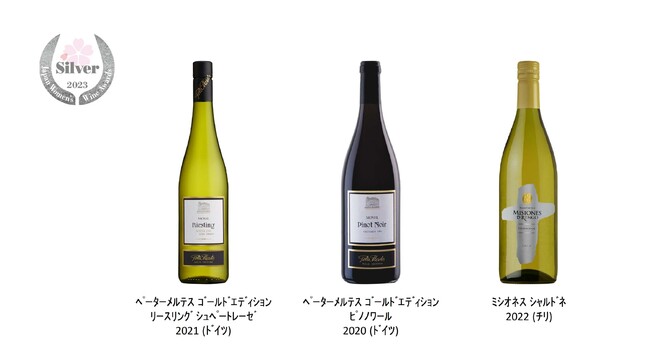 また、「ペータメルテス ゴールドエディション リースリング シュペートレーゼ 2021(ドイツ)」・「ペーターメルテス ゴールドエディション ピノノワール 2020(ドイツ)」・「ミシオネス シャルドネ 2022 (チリ)」がシルバーを受賞しました。