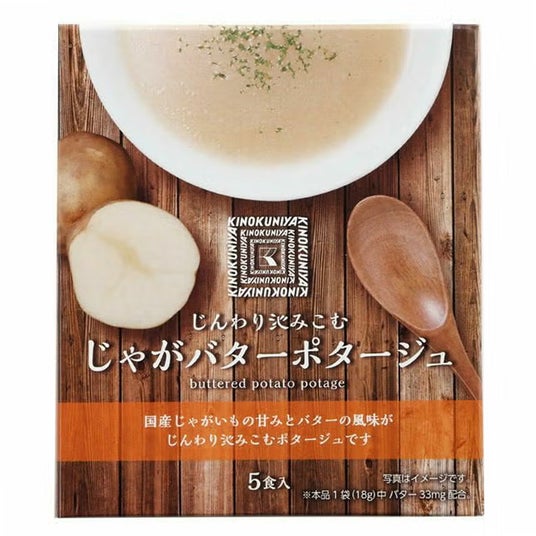 国産じゃがいもを使い、バターのコクと香りを生かして仕上げたなめらかなポタージュ。お湯を注ぐだけで、ほっとひと息つきたいときにおすすめのやさしい味わいです。