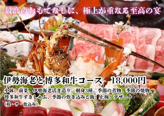 ~日本料理てら岡~コース名:伊勢海老と博多和牛コース価 格 :18,000円(税込・サ込・飲放込)