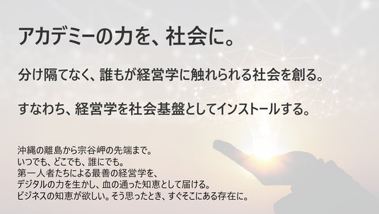 「いつでも」「どこでも」「誰にでも」経営学に触れられる社会をつくる