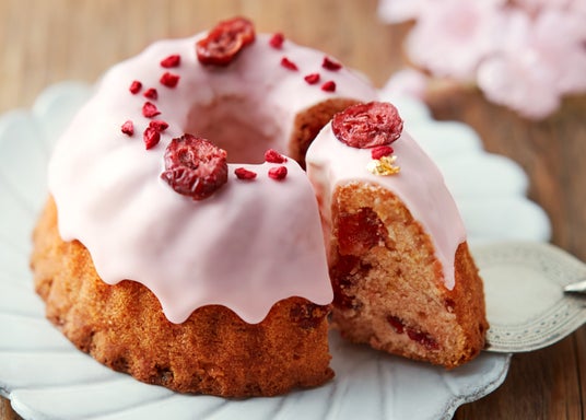 発酵バターとアーモンドの風味豊かな生地にクランベリーを合わせて焼き上げ、上品な桜の香りがふんわりと広がるアイシングを添えました。淡い桜色で可愛らしく仕上げて。