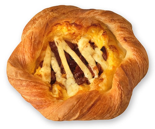 照り焼きチキンとたまごサラダをのせ、マヨネーズをかけて焼き上げたデニッシュです。甘辛い味わいとまろやかさが調和した、食べ応えのある一品です。