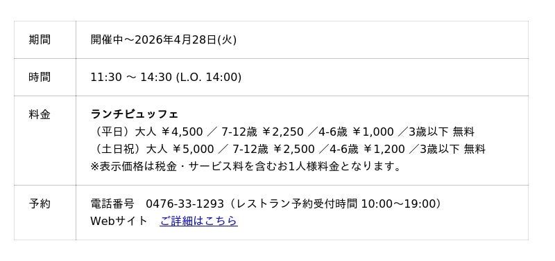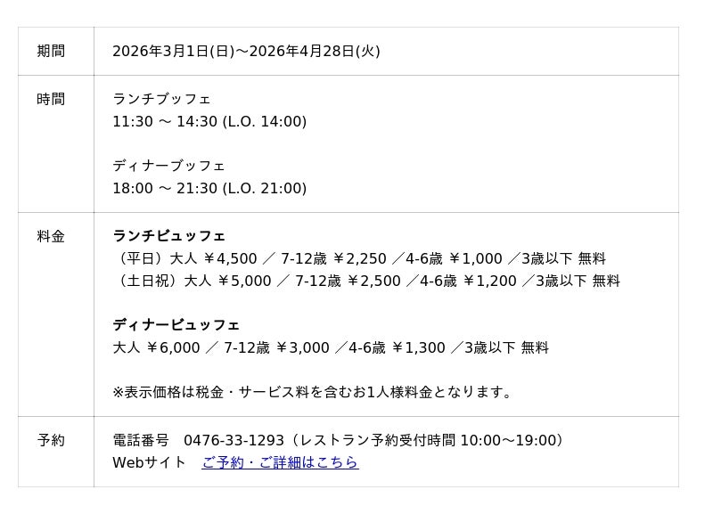 URL:https://www.anacrowneplaza-narita.jp/information/restaurant/buffet_2026-0304.html