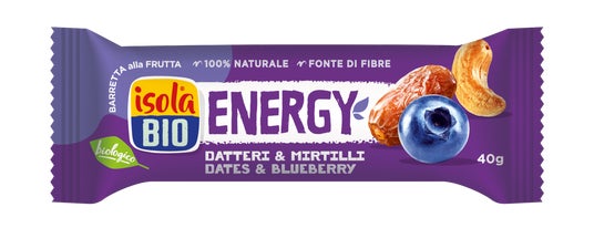 デーツ&ブルーベリーのフルーツバー。デーツをベースにレーズン、カシューナッツ、ドライブルーベリーを加えたフルーツバー。もっちりとした食感の中に、デーツの自然な甘みとブルーベリーの甘酸っぱい果実感が広がります。