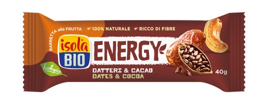 デーツ&カカオのフルーツバー。デーツをベースにナッツとドライフルーツを合わせたフルーツバー。カカオの豊かな味わいに、カカオニブのカリッとした食感がアクセントになっています。
