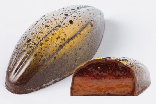 ブラッドオレンジのジュレとキャラメルのようなビターチョコレートガナッシュ