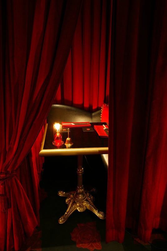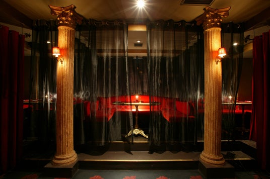 紅く厚いベルベットカーテンで仕切られたL字型のシート。気になるあの人と距離を近づけたい時に…。