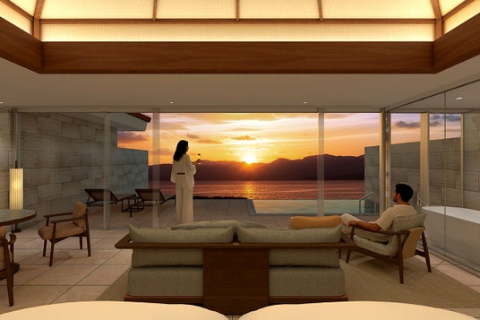 客室は、120平方メートル を超える専有面積を有し、景色に調和した自然素材の温かみを感じるインテリアを採用。ベッド、ダイニングテーブル、バスルームなど客室のどこからでも美しい眺望を楽しめるレイアウトとしています。テラスには、季節に応じて最適な水温を保ち、一年中使用できる冷却・昇温機能付きプールを設けます。また、隣り合う2つの客室を室内ドアで繋ぐコネクティングルームとして使用でき、三世代の家族旅行や友人との滞在にも最適です。