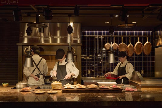 「La Jyho Live Kitchen(ラジョウ ライブキッチン)」と冠するビュッフェエリアでは、新ビュッフェ「THE THEATER BUFFET(ザ・シアター・ビュッフェ)」をスタート。調理パフォーマンスを間近で楽しむ“劇場型”スタイルへと進化します。