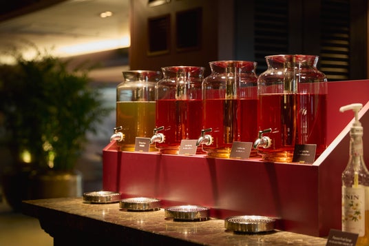 4種のティー、季節のフルーツ、シロップを自由に組み合わせ、「オリジナル・ティーモクテル」を作れる体験型ドリンクバーです。