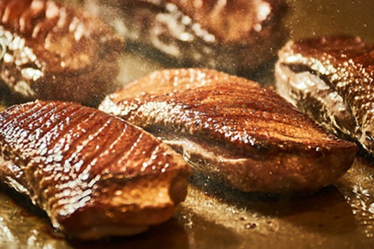 ◆合鴨の会津味噌漬けと焼豆腐田楽 <ディナータイム>会津味噌のコクと甘みが、香ばしく焼けた合鴨の旨みを最大限に引き立て、中はふっくらジューシーに仕上げました。焼豆腐田楽と一緒にお召し上がりください。