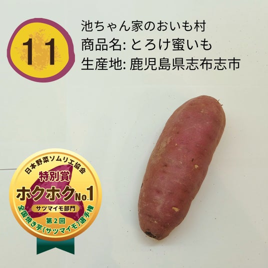特別賞として「ホクホク食感NO.1」「しっとり食感NO.1」「甘さNO.1」の3つを増設しました。評価員である野菜ソムリエが選び、票がもっとも多く集まった焼き芋(サツマイモ)へ贈られます。
