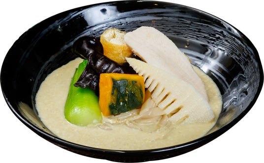 水質を改良し加水率を高めることで、もちもちとした食感と、スープをしっかりまとわせる口当たりを実現しました。水分が多いぶん小麦粉の使用量は抑えられ、一般的な麺と比べてカロリー・糖質が約10%ほど低いのも特徴です。