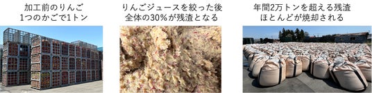 青森県は、全国の生産量の約60%を占める日本一のりんご王国です(出所:青森県庁HP)。りんごを使った加工品や、りんごをテーマにした観光施設なども多く、地域で150年以上の歴史を有する産業として、重要な役割を果たしています。しかし近年は、りんご農家の高齢化や労働力不足による栽培面積の減少に加え、りんごジュースを絞った後の残渣の処理にかかる環境面・費用面への負担が大きな課題となっています。