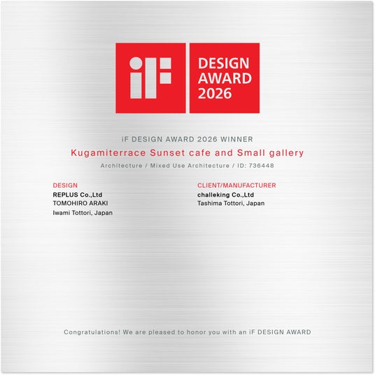 この度は、弊社が携わらせていただいた「クガミテラス Sunset cafe and Small galley」が世界的な権威を持つ「iF Design Award2026」を受賞することができ、大変嬉しく、光栄に存じます。