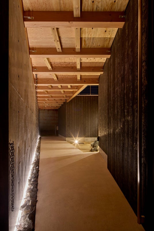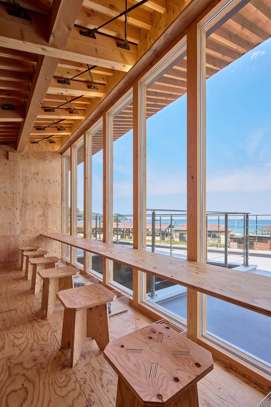 設計においては、地域産の焼杉とRC壁、垂木構造などを組み合わせ、風や塩害といった海辺特有の自然環境に耐える構造と意匠を両立し地域技術の継承と未来への提案を兼ねた建築をめざした。