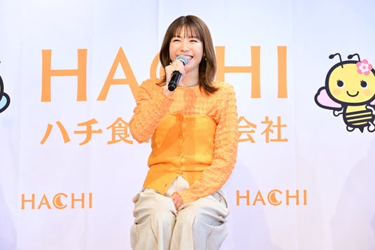 若槻さんを加えてのトークセッションでは、高橋社長が「ハチ食品のことを知っていますか?」と質問しようとしたその瞬間、若槻さんは「すごくお世話になっています!」「たらこパスタのソースはずっとお気に入りで、うちの子が大好きなんです!」とプライベートでハチ食品の商品を愛用していると力説。パスタソースだけでなく、カレーもレトルトをよく利用すると明かしてくれました。