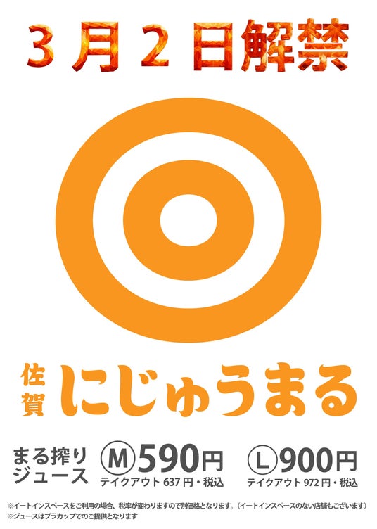 本商品は佐賀県が20年以上の歳月をかけて開発したブランドかんきつ「にじゅうまる」を使用したジュースで、「にじゅうまる」解禁に合わせての発売となります。ご注文を受けてからお客様の目の前でまる搾りしてお作りする、素材の魅力をダイレクトに味わえる一杯です。