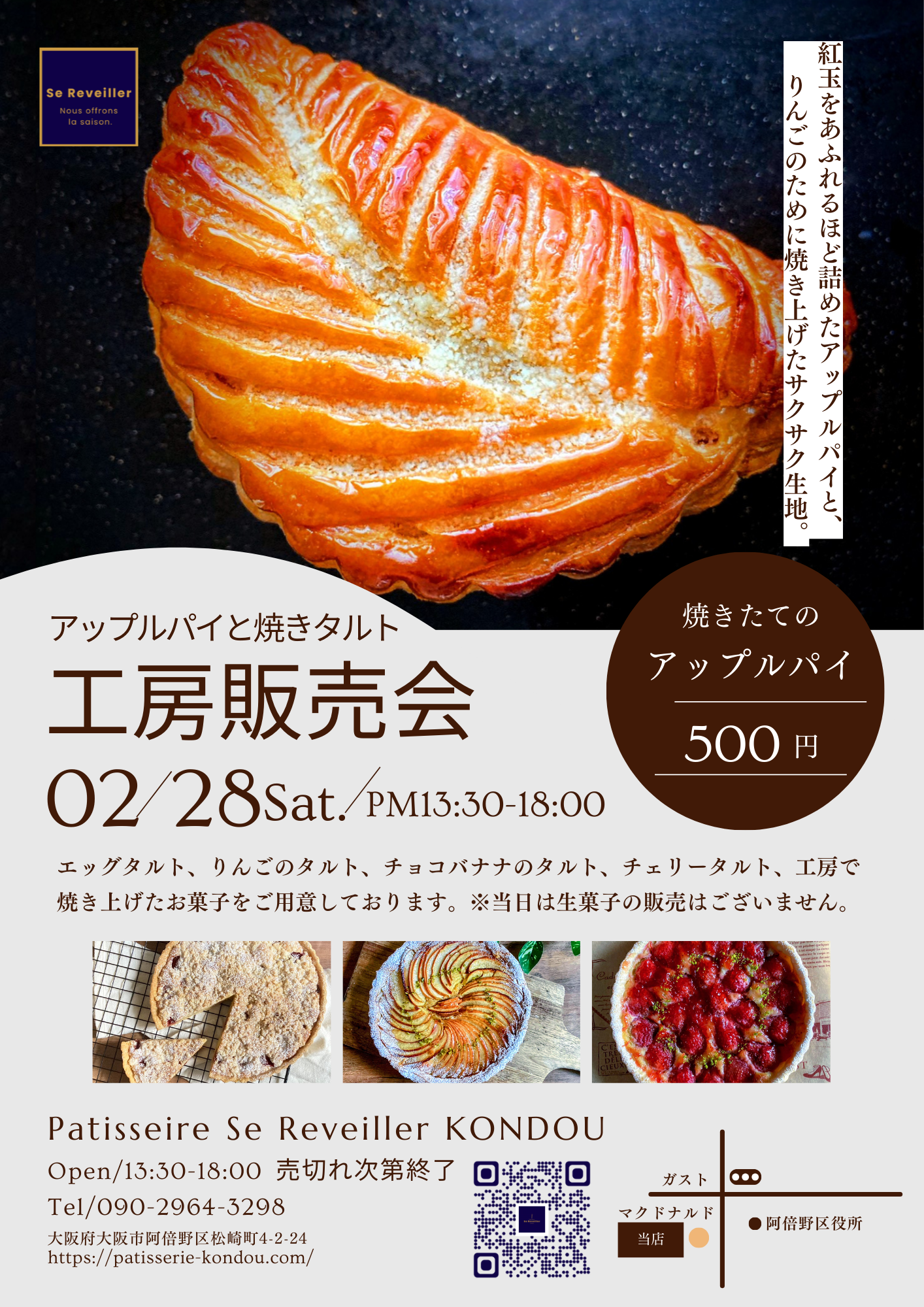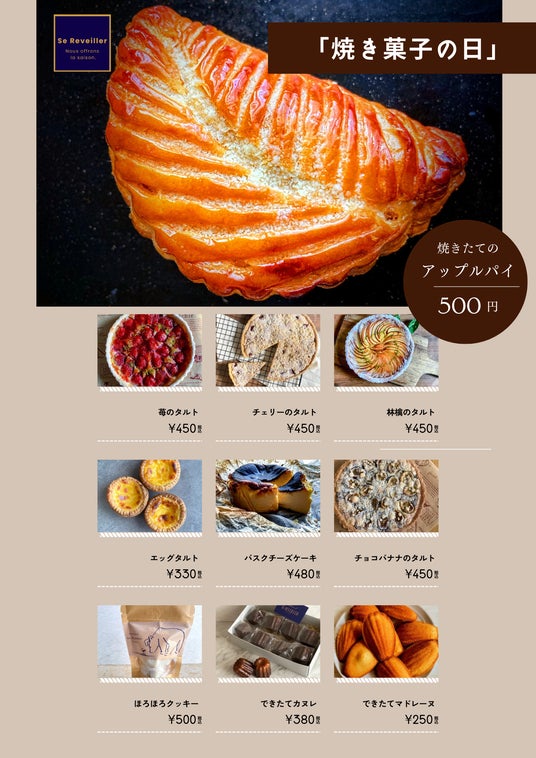 【焼きたてアップルパイ 500円・焼きタルト 450円~】