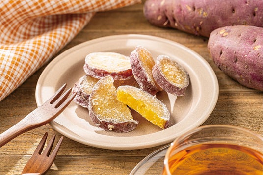 一般的に、さつまいもを糖蜜漬けした素材菓子は、“炊き”製法で作られることが多いとされていますが、本商品ではあえて“蒸し”製法を採用することで、余分な水分や旨みの流出を抑え、紅はるか本来の甘みと濃密な風味を味わえるよう仕上げています。その後、砂糖で蜜漬けしコーティングすることで、さつまいものうまみをぎゅっと閉じ込めました。