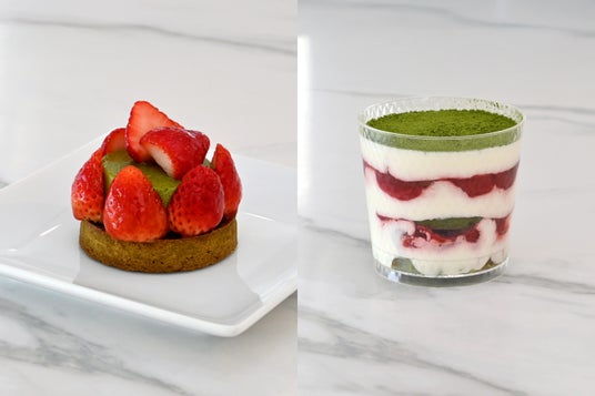 自由が丘店では、日本茶と相性の良い季節素材を用いた店舗限定スイーツを月がわりで展開しており、今回は栃木県産苺「とちあいか」を使用した、苺と抹茶のスイーツ2種が登場します。