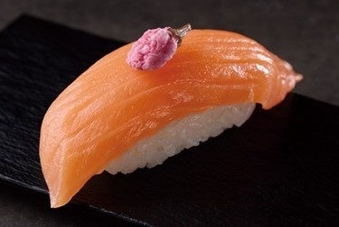 2.桜のせサーモン:口の中でとろけるサーモンに、春の訪れを感じさせる「桜の塩漬け」をトッピング。桜の優しい香りと程よい塩味が、サーモンの甘みをより一層引き立てます。