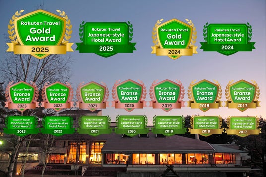 当館は2月10日、楽天トラベルが発表する「楽天トラベル ゴールドアワード 2025」と「楽天トラベル 日本の宿アワード 2025」を受賞いたしました。W受賞は9年連続、ゴールドアワードと日本の宿アワードは2年連続の受賞となります。