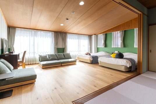 赤ちゃん連れでも安心して泊まれる環境を整えるため、段差のないワンフロア設計と仕切れる畳スペースを採用。53平方メートル のゆとりある客室で、八ヶ岳エリアでの子連れ旅行を快適にサポートします。