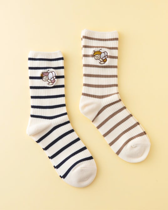 ぶんぶん/るんるん刺繍ボーダーソックス(2種)価 格:各1,320円(税込)