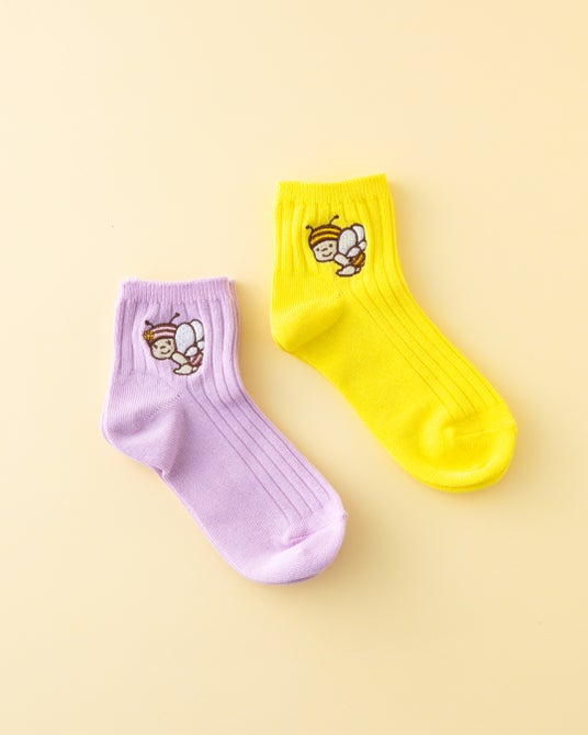 靴下屋ならではの上品でやさしい風合いと、ぶんぶんのかわいらしさを融合したデザインです。