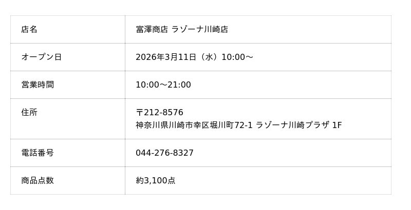 日本最大級の製菓・製パン材料、器具専門店として創業106年の株式会社富澤商店は、2026年3月11日(水)、「富澤商店 ラゾーナ川崎店」をラゾーナ川崎プラザ1階「グラン・フード」内の同フロア別区画へ移転し、リニューアルオープンいたします。