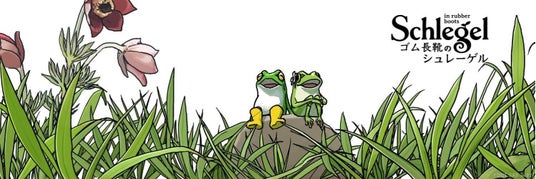 宮沢賢治の「蛙のゴム靴」作品をモチーフにした「ゴム長靴のシュレーゲル」は、毎週土曜日の岩手日報文化面にて掲載中の漫画です。身長4cmほどのカエルたちが送る四季折々の自然の豊かさ、厳しい摂理を描いています。
