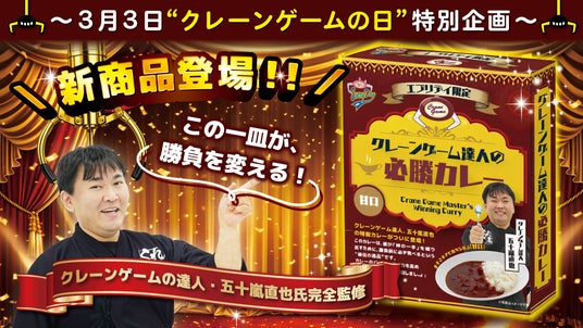 「笑顔創造」を企業理念とする株式会社東洋(本社:埼玉県桶川市、代表取締役:中村秀夫)が運営するクレーンゲームのテーマパーク「エブリデイ」は、2026年3月3日(クレーンゲームの日)より、オリジナルレトルトカレー『クレーンゲーム達人の必勝カレー』を全店舗で導入いたします。