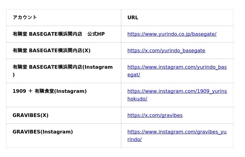 開業に先立ち、「有隣堂 BASEGATE横浜関内店」および各店舗の公式ホームページならびにSNSアカウントを順次開設し、イベント情報や店舗コンテンツ、空間の魅力を継続的に発信してまいります。