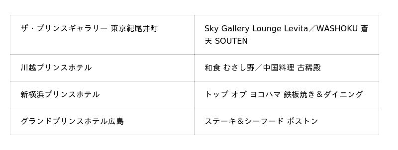 ※記載がない限り、レストラン・イベントの表記料金には、消費税が含まれております。別途会計時にサービス料(13%)(ザ・プリンスギャラリー 東京紀尾井町は15%)を加算させていただきます。(グランドプリンスホテル広島の表記料金には消費税・サービス料が含まれております。)