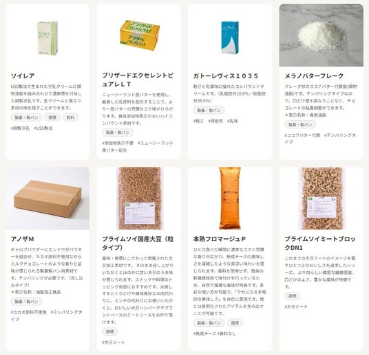 業態別での製品検索機能に加え、「コストダウン」「インバウンド対応」「人手不足対策」「プラントベース」など、お客様が抱える課題キーワードから製品を検索できる機能を搭載しております。現在、約60種類の製品情報と80種類のレシピを掲載しており、今後も順次拡充してまいります。