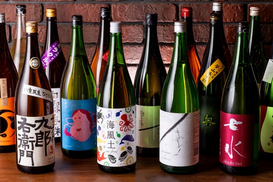 全国各地から厳選した日本酒を常時取り揃え、純米・純米吟醸を中心に、季節ごとに入れ替わる地酒を展開。「十六代九郎右衛門 純米」、「宮寒梅 純米大吟醸」、「雨降 水もと生原酒 無濾過」など、魚料理との相性を考えた銘柄構成としています。