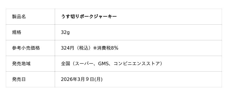 株式会社なとり(本社:東京都北区 会長兼社長:名取三郎)は、「うす切りポークジャーキー」を3月9日(月)より新たに発売いたします。